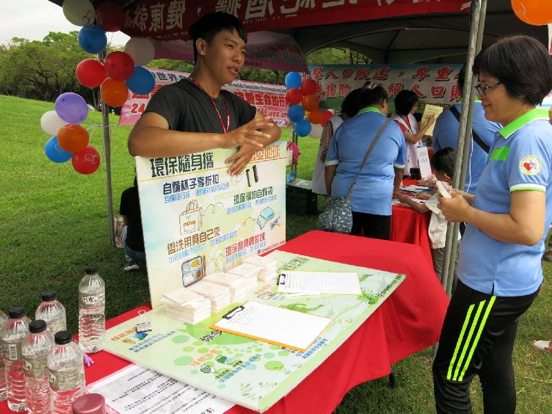 還沒到現場小編就感受到了各位參與民眾的朝氣了,小編在現場看到許多的爸爸媽媽帶著小朋友們一同闖關,心中感到溫馨許多,我們也跟現場民眾宣導減少使用一次性的餐具、杯子、塑膠袋等物品,不僅如此還有非常多民眾跟我們說,他們都非常努力落實環保行動,小編我聽了差點飆淚!希望大家能夠把這份精神繼續傳承下去。