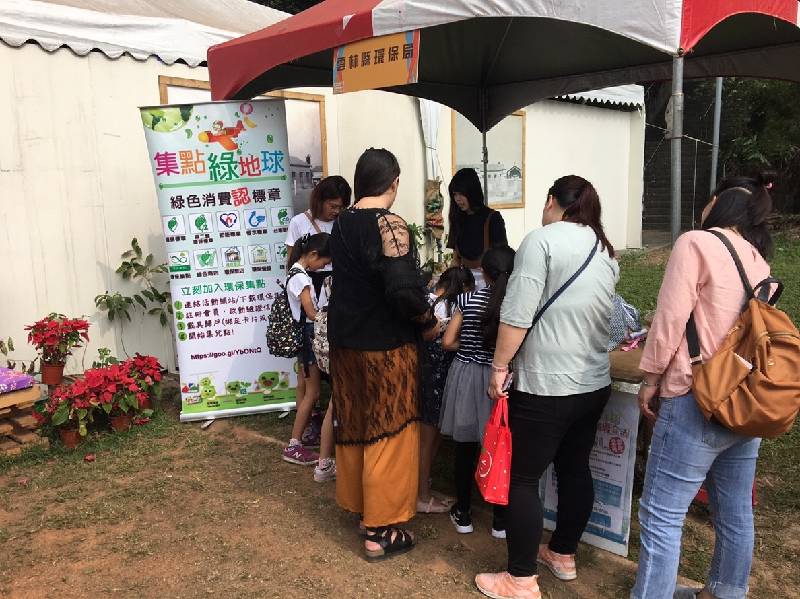 本局搭配活動於現場設攤宣導綠色生活與消費,針對綠色消費及低碳生活之概念來做推廣,鼓勵在選購物品時,優先選購具有環保標章及低碳之產品,促使綠色消費融入日常生活當中,並鼓勵民眾使用手機下載「環保集點」App,提升活動參與者對綠色消費的認知。